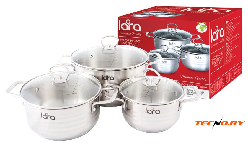 набор кастрюль, нержавеющая сталь, покрытие отсутствует, крышка стеклянная
