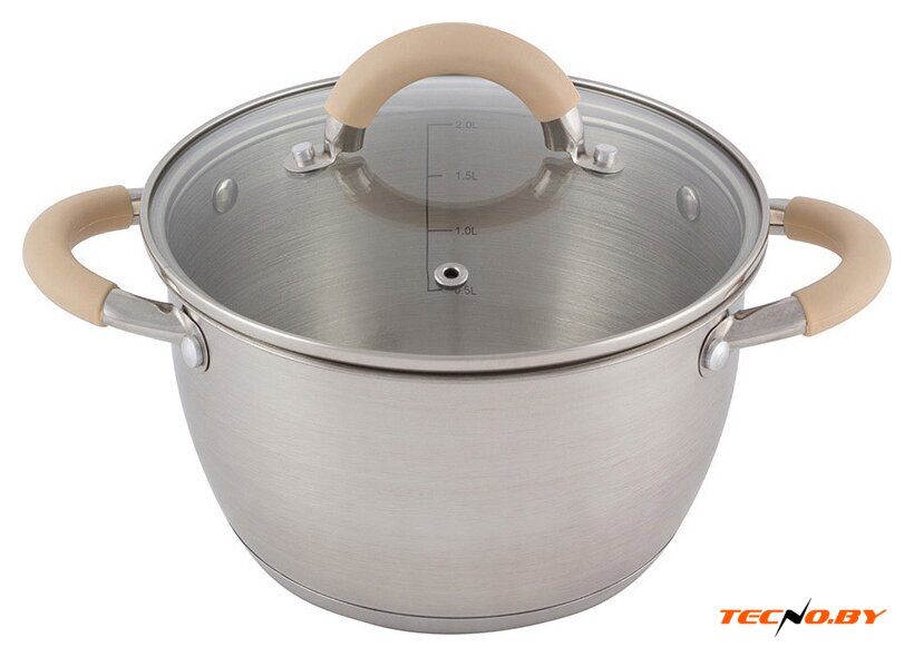 кастрюля, 3.9 л (20 см), нержавеющая сталь, покрытие отсутствует, крышка стеклянная