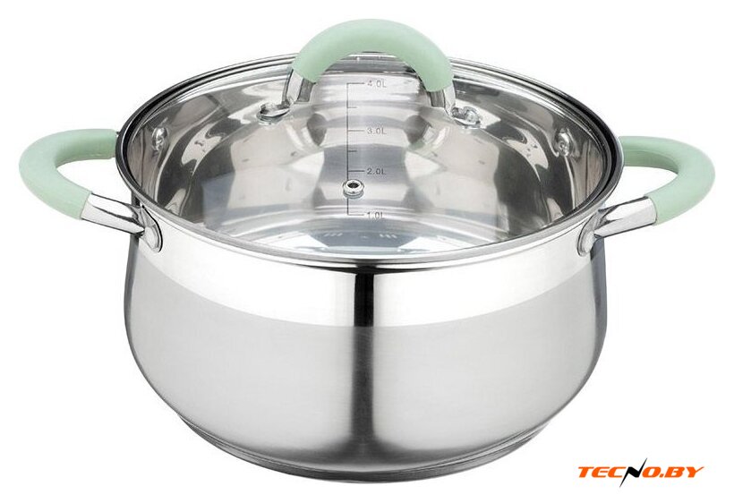 кастрюля, 3.9 л (20 см), нержавеющая сталь, покрытие отсутствует, крышка стеклянная