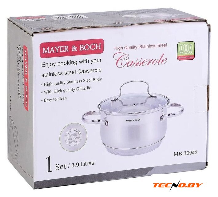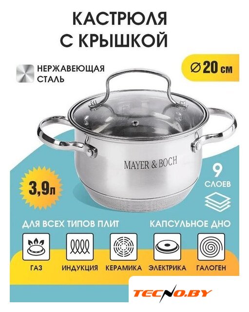 кастрюля, 2.9 л (18 см), нержавеющая сталь, покрытие отсутствует, крышка стеклянная