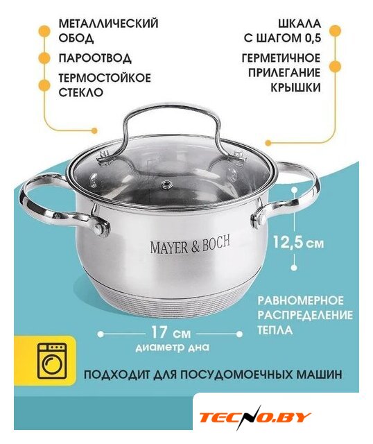 кастрюля, 0.7 л (12 см), нержавеющая сталь, покрытие отсутствует, крышка стеклянная