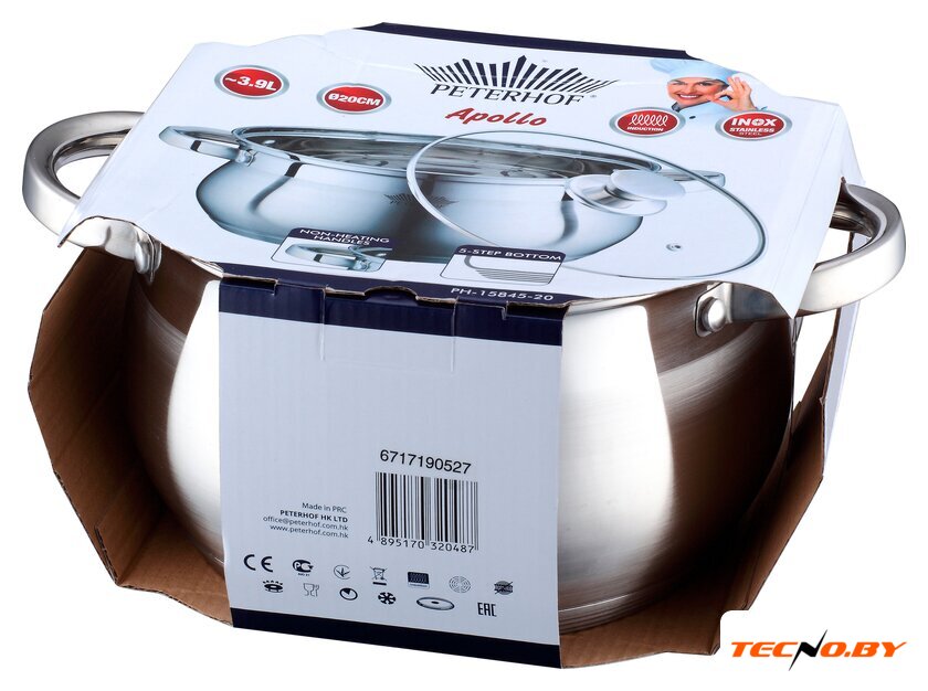 кастрюля, 2.9 л (18 см), нержавеющая сталь, покрытие отсутствует, крышка стеклянная