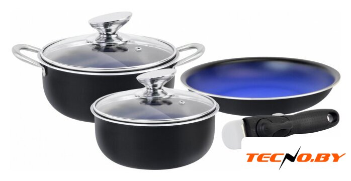 Состав набора | кастрюля 24 см, 5 л с крышкойсковорода 24 см, 1.8 лковш 18 см, 2 л с крышкой со съемной ручкой |