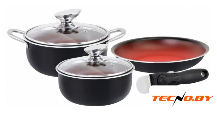 Состав набора | кастрюля 26 см, 6 л с крышкойсковорода 26 см, 2.1 лковш 18 см, 2 л с крышкой со съемной ручкой |