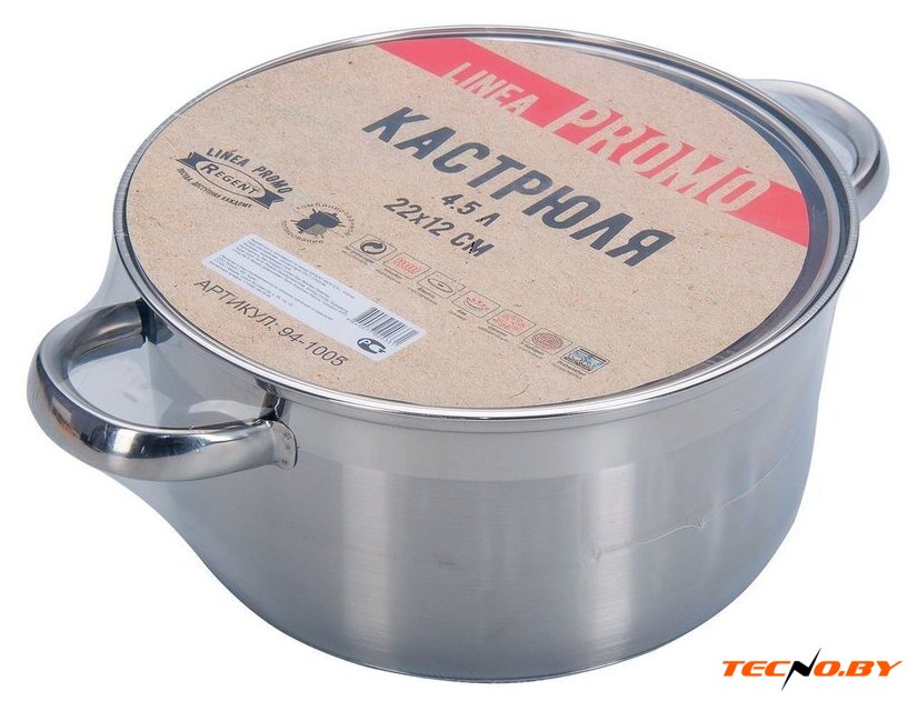 кастрюля, 3.9 л (20 см), нержавеющая сталь, покрытие отсутствует, крышка стеклянная