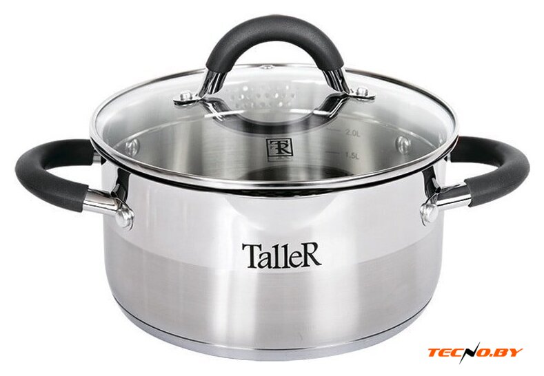 кастрюля, 3.2 л (20 см), нержавеющая сталь, покрытие отсутствует, крышка стеклянная