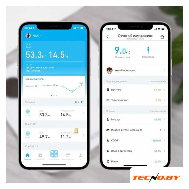 | Функциональные особенности | расчет доли воды, расчет доли жировой ткани, расчет доли мышечной ткани, расчет доли костной ткани, расчет ИМТ (BMI), расчет ПБМ (BMR), расчет обмена веществ с учетом физической активности (AMR), расчет уровня белка, расчет биологического возраста |
