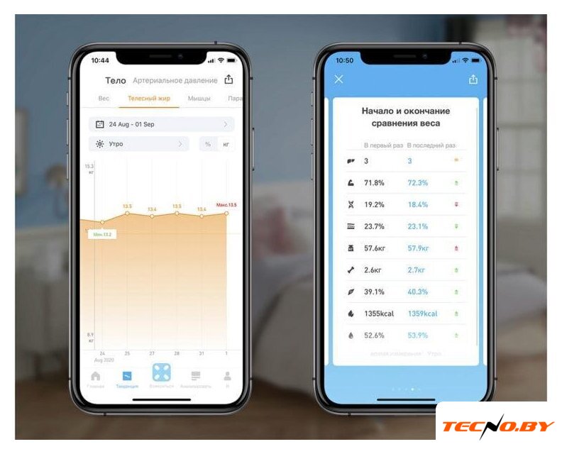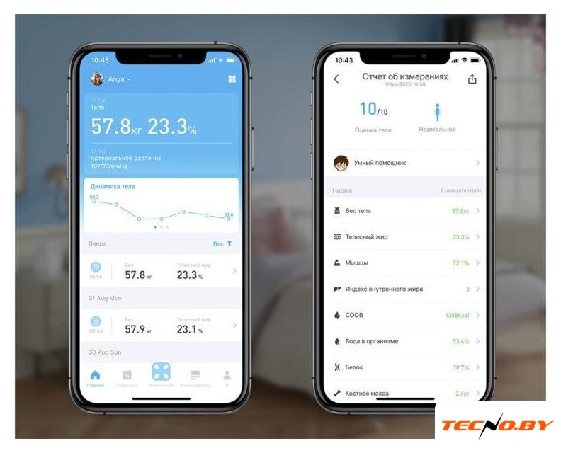 | Функциональные особенности | расчет доли воды, расчет доли жировой ткани, расчет доли мышечной ткани, расчет доли костной ткани, расчет ИМТ (BMI), расчет уровня белка, пульс |