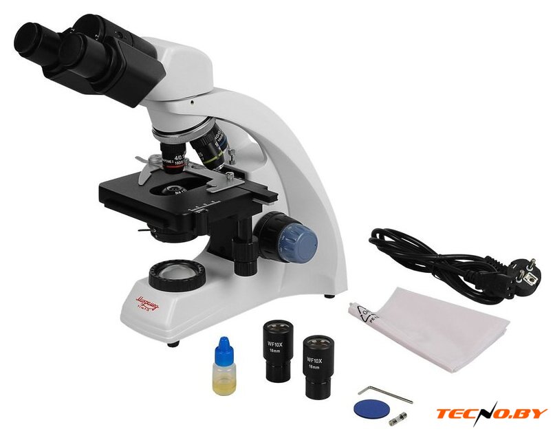 | Состав набора | бинокулярный микроскоп, объективы (4x, 10x, 40x, 100x OIL), окуляры (WF 10x/18), конденсор Аббе, светодиодный осветитель, механический предметный столик, аксессуары (светофильтры, иммерсионное масло, пылезащитный чехол) |