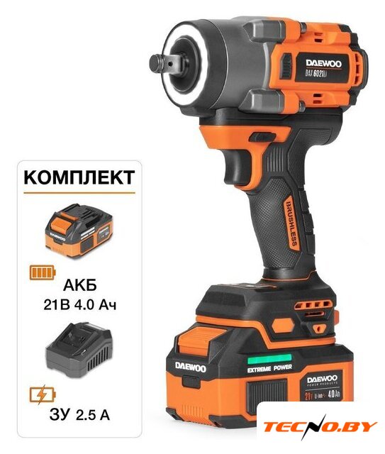 питание: аккумуляторный, Li-ion, 2400 об/мин, 950 Н·м, напряжение аккумулятора: 20 В, ёмкость аккумулятора: 5 А·ч, аккумулятор в комплекте, 2850 г