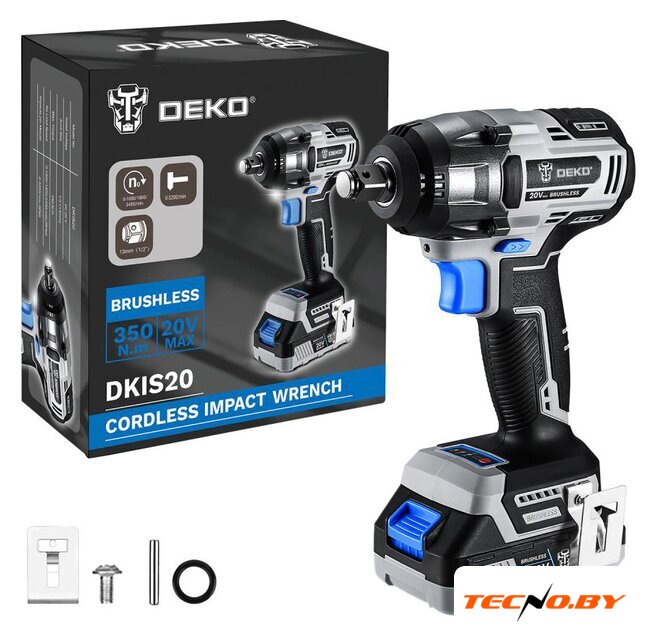 Комплектация | - Гайковерт DKIS20;- Аккумулятор - 1 шт;- Зарядное устройство;- Скоба поясная;- Уплотнительное кольцо;- Штифт;- Инструкция;- Коробка. |