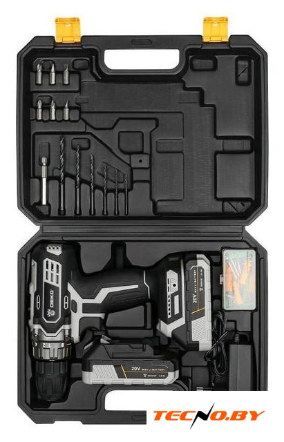 Комплектация | дрель-шуруповерт аккумуляторная - 1 штаккумулятор 2.0Ач - 2 штзарядное устройство - 1 штсверла 2,2.5,3,4,5,6 мм - 6 штбиты SL4,6, PH1,2, PZ1,2 - 6 шт60мм магнитный держатель бит - 1штгвозди 1.2x20мм,- 5 штгвозди 3x35мм,- 5 шткаркасные крючки 5LB,- 5 штвинты 3x15мм,- 5 штвинты 4x25мм,- 5 штболты 4x14мм,- 5 штшайбы 4мм,- 5 штгайки 4мм,- 5 штдюбели 6мм,- 5 штдюбели 8мм- 5 шткейс |