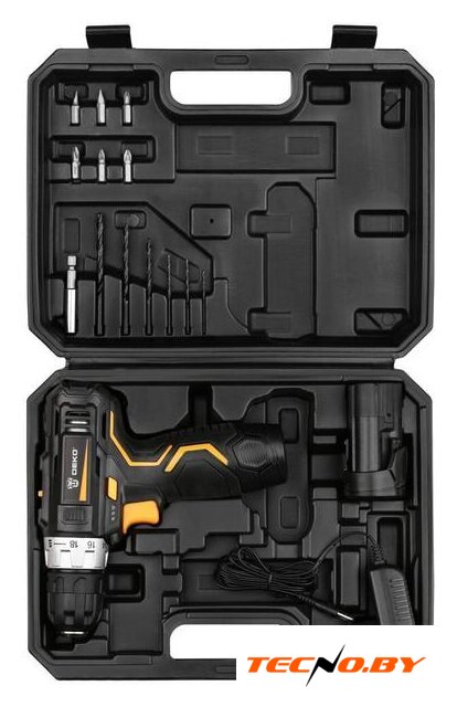 Комплектация | - Дрель-шуруповерт;- Аккумулятор - 2 шт;- Зарядное устройство;- Биты;- Держатель бит;- Сверла;- Инструкция;- Кейс. |