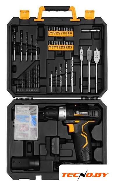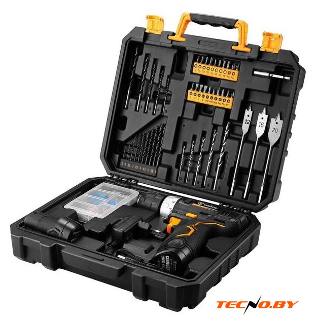 Комплектация | - 1 шт. аккумуляторная дрель;- 5 шт. сверла для дерева 3,4,5,6,8мм;- 5 шт. сверла для каменной кладки 3,4,5,6,8 мм;- 10 шт. сверла витые 1,5,2,2,5,3,3,5,4,4,5,5,5,5,6 мм;- 20 шт. биты SL3,4,5,6, PH0,1,2,3, PZ0,1,2,3, T10,15,20,25, H3,4,5,6;- 1 шт. магнитный держатель для бит 60 мм;- 3 шт. сверла плоские 12,16,20 мм;- 48 шт. крепежи;- 1 шт. зарядное устройство;- 1 шт. допролнительный аккумулятор. |