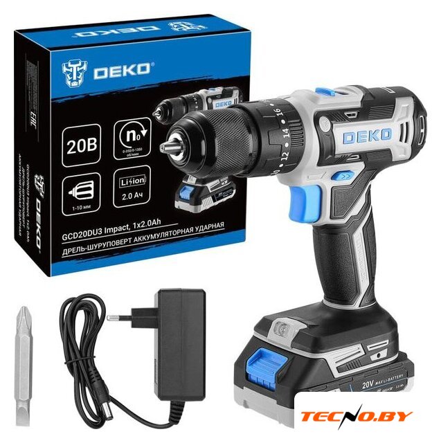 | Комплектация | - Дрель аккумуляторная -1 шт.- Аккумулятор - 1 шт.- Зарядное устройство - 1 шт.- Бита - 1 шт.- Руководство по эксплуатации - 1 шт. |
