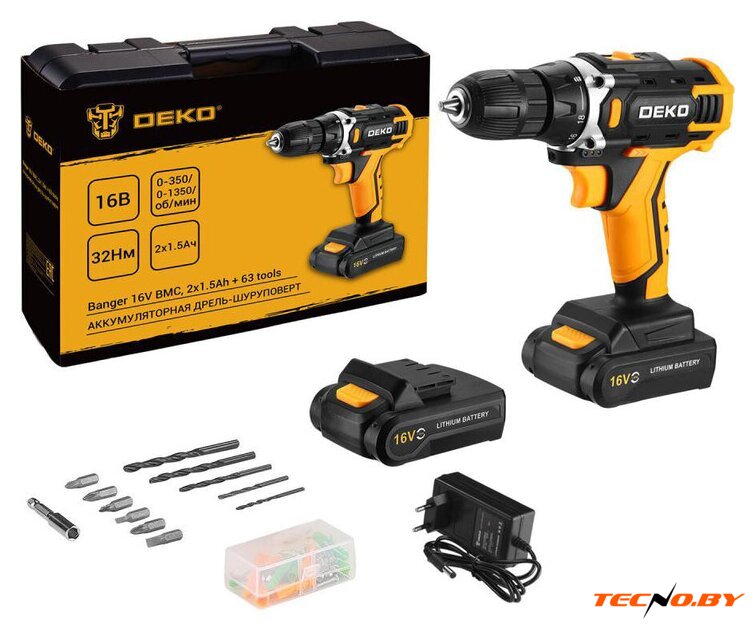 Комплектация | Дрель-шуруповерт - 1 шт.Аккумулятор 1,5 Ач - 2 шт.Зарядное ус-во - 1 шт.Биты - 6 шт.Сверла - 6 шт.Удлинитель бит - 1 шт.Набор крепежа - 50 шт.Руководство по эксплуатации - 1 шт.Кейс - 1 шт. |