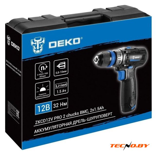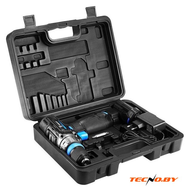 | Комплектация | - Дрель-шуруповерт - 1 шт.- Аккумулятор 1,5 Ач - 2 шт.- Зарядное устройство - 1 шт.- Бита - 1 шт.- Инструкция- Кейс |