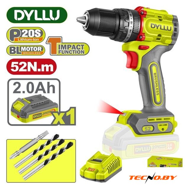 | Комплектация | - Ударная аккумуляторная дрель-шуруповерт DYLLU DTCDP5282 - 1 шт.- Аккумулятор 2,0 Ач DTLBP520 - 1 шт.- Зарядное устройство DTFCP518 - 1 шт.- Сверло по бетону - 3 шт.- Бита Cr-V 65 мм - 1 шт.- Инструкция- Коробка |