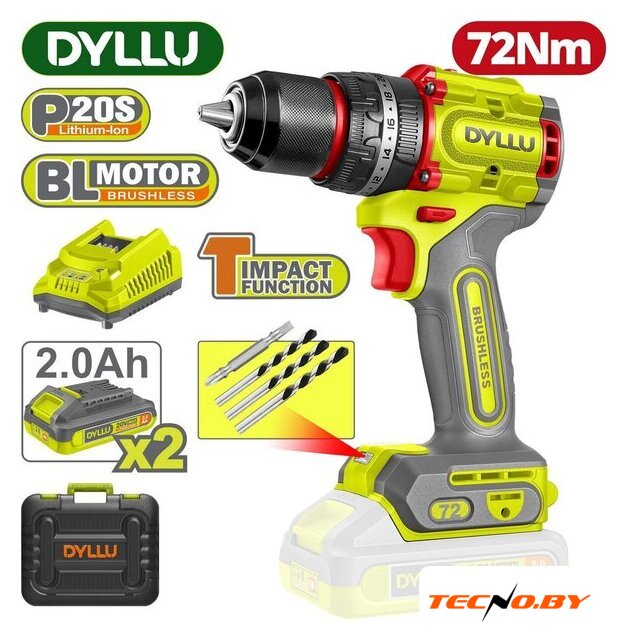 | Комплектация | - Дрель-шуруповерт ударная - 1 шт.- Аккумулятор 2,0 Ач DTLBP520 - 2 шт.- Зарядное устройство DTFCP518 - 1 шт.- Сверло - 3 шт.- Двухсторонняя бита - 1 шт.- Инструкция- Кейс |