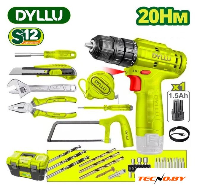| Комплектация | - Аккумуляторная дрель DTCDS510 - 1 шт.- Аккумуляторная батарея 1,5Ач DTLBS515 - 1 шт.- Кабель USB для зарядки - 1 шт.- Отвертка-держатель бит 1/4''x100 мм - 1 шт.- Биты 50 мм (SL4 / SL5 / SL6 / PH1 / PH2 / PH3 / T10 / T15 / T20 / T30) - 10 шт.- Комбинированные плоскогубцы 6'' - 1 шт.- Разводной ключ 6'' - 1 шт.- Индикаторная отвертка 140 мм - 1 шт.- Рулетка 3 м - 1 шт.- Нож с сегментным лезвием 18 мм - 1 шт.- Спиральные сверла 2 / 3 / 4 / 5 / 6 мм - 5 шт.- Сверла по дереву 4 / 5 / 6 / 8 мм - 4 шт.- Винты (ST3.5*10 шт., ST4*10 шт.) - 20 шт.- Пластиковые дюбеля (6 мм*10 шт., 5 мм*10 шт.) - 20 шт.- Ножовки 6'' - 1 шт.- Торцевые насадки 5 / 6 / 7 / 8 / 9 / 10 / 11 мм - 7 шт.- Пластиковый ящик для инструментов 16'' - 1 шт. |