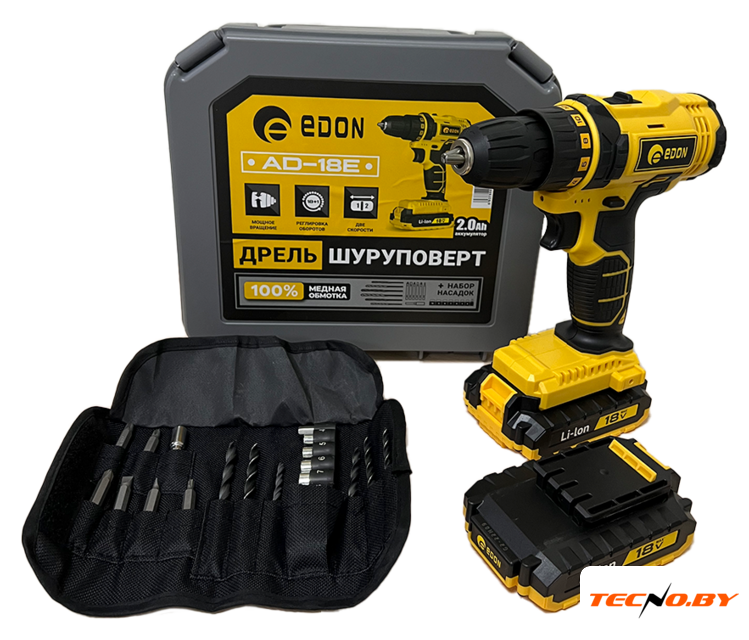 Комплектация | - шуруповерт, - 2 аккумулятора,- зарядное устройство, - набор насадок, - пластиковый кейс. |