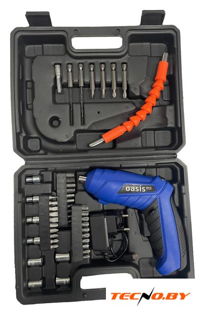 | Комплектация | - Аккумуляторная отвёртка – 1 шт.- Зарядное устройство – 1 шт.- Длинный адаптер – 1 шт.- Адаптер патрона – 1 шт.- Адаптеры – 8 шт.- 25 мм биты – 28 шт.- 50 мм биты – 4 шт.- Свёрла с держателем – 2 шт. Кейс c оснасткой - 1 шт.- Инструкция по эксплуатации – 1 шт. |