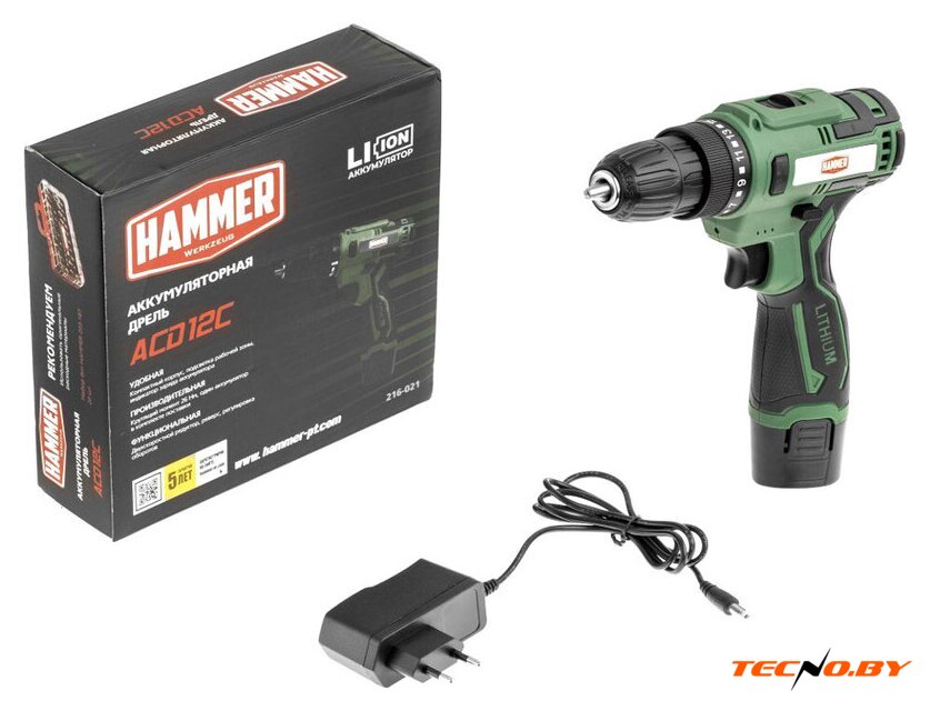 дрель-шуруповерт, аккумулятор 12V, Li-ion, патрон быстрозажимной, 2 скорости, режимы: сверление/шуруповерт