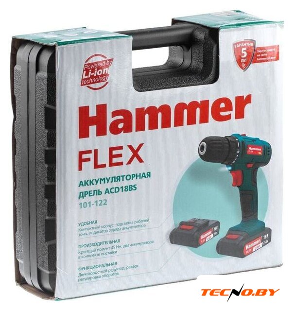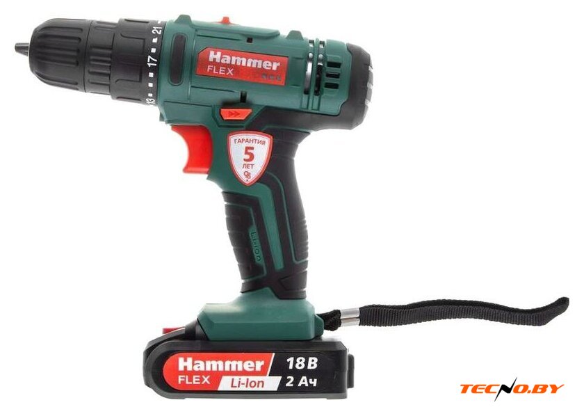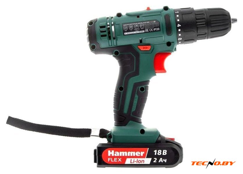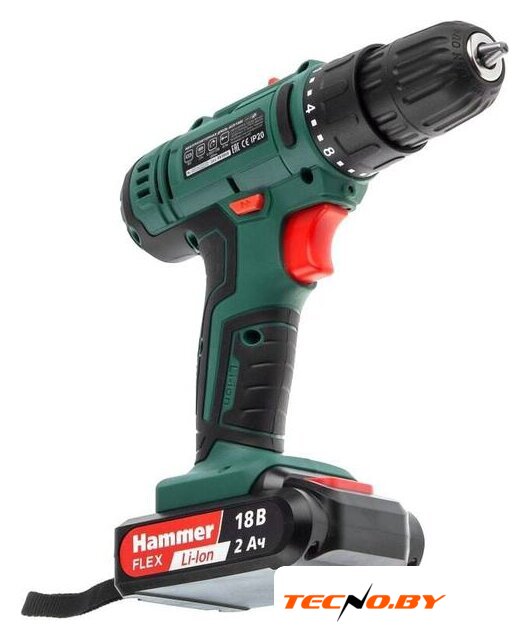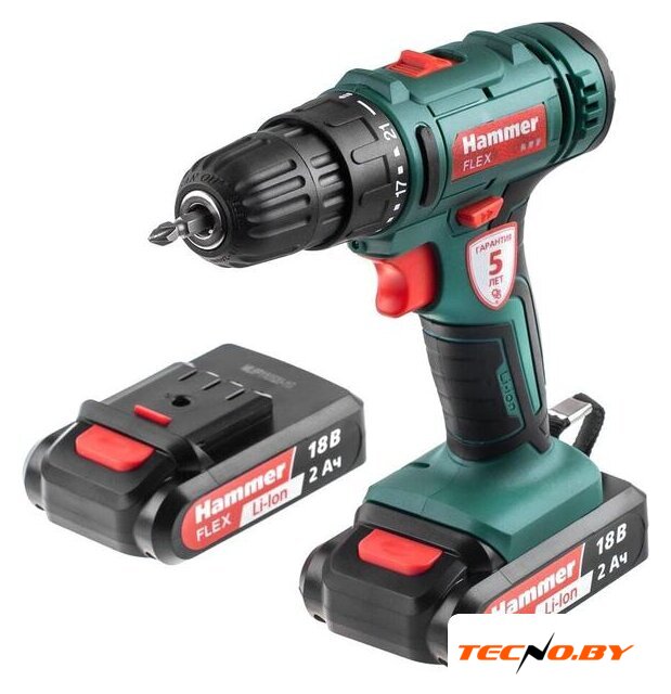 дрель-шуруповерт, аккумулятор 18V, Li-ion, патрон быстрозажимной, 2 скорости, режимы: сверление/шуруповерт