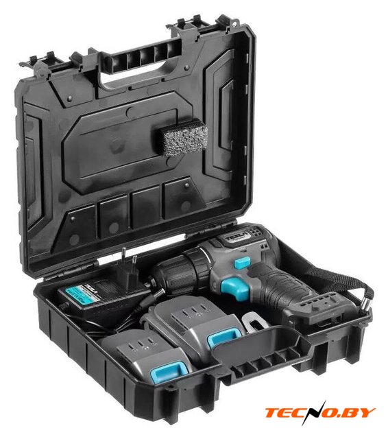Комплектация | Дрель-шуруповерт - 1 шт.Зарядное устройство - 1 шт.Аккумулятор 2,0 Ач - 2 шт.Кейс |