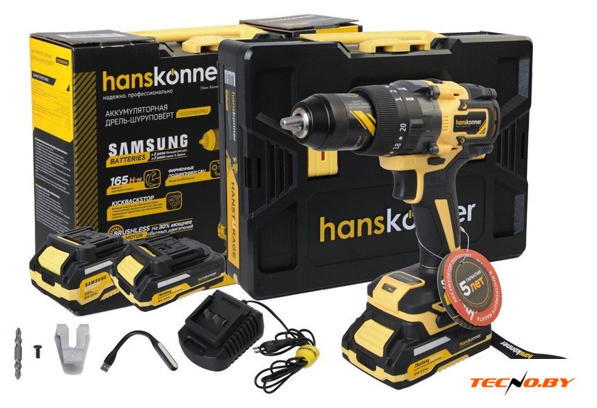 Комплектация | - Аккумуляторная ударная дрель-шуруповерт (1 шт)- Аккумуляторная батарея (2 шт - 4 и 2 Ач)- Зарядное устройство (1 шт)- Двусторонняя бита (1 шт)- Дополнительная рукоятка (1 шт)- Скоба (1 шт)- Фиксирующий винт (1 шт)- USB LED-фонарик (1 шт) |