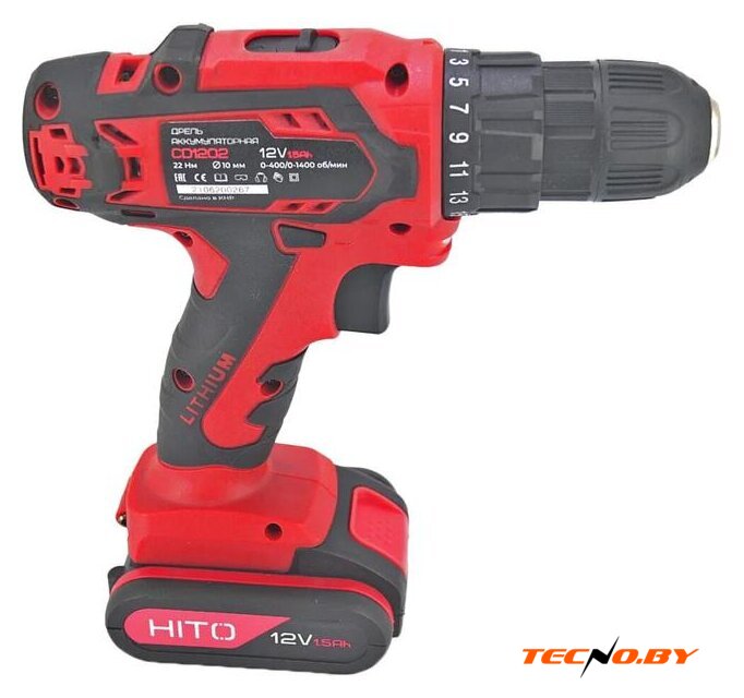 дрель-шуруповерт, аккумулятор 12V, Li-ion, патрон быстрозажимной, 2 скорости, режимы: сверление/шуруповерт