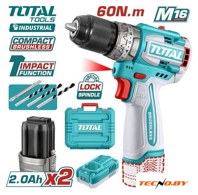 | Комплектация | - Аккумулярторная дрель-шуруповерт - 1 шт.- Аккумулятораная батарея TFBLI1620 2,0 Ач - 2 шт.- Зарядное устройство TFCLI1613 1,3 А - 1 шт.- Двухсторонняя бита 25 мм - 1 шт.- Сверла по камню - 11 шт.- Инструкция- Кейс |