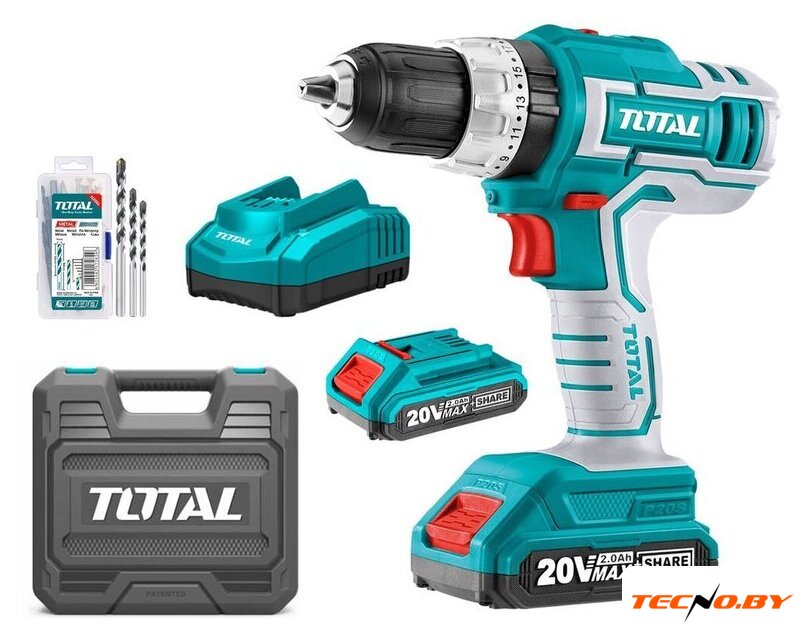 Комплектация | - Дрель-шуруповерт;- Аккумулятор 2,0 А*ч - 2 шт;- Быстрое зарядное устройство;- Набор оснастки и крепежа - 50 шт;- Инструкция;- Кейс. |