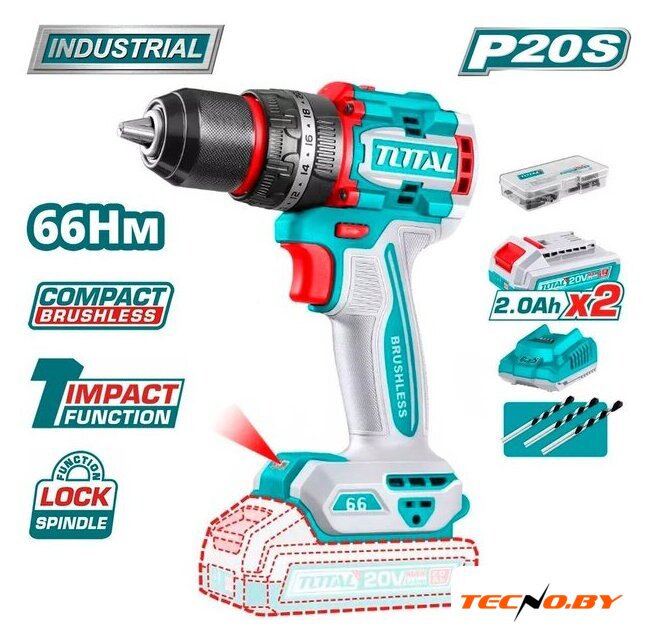 Комплектация | - Ударная дрель-шуруповерт - 1 шт.- Аккумулятор 2,0 Ач TFBLI20011 - 2 шт.- Зарядное устройство TFCLI2001 - 1 шт.- Аксессуары - 47 шт.- Сверло - 3 шт.- Инструкция.- Коробка. |