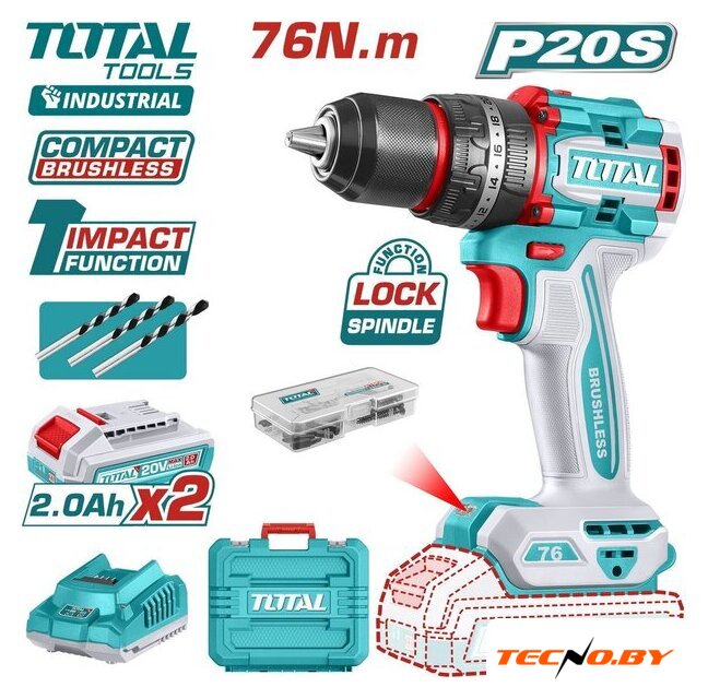 | Комплектация | - Бесщеточная дрель-шуруповерт - 1 шт.- Аккумулятор 2,0 Ач TFBLI20011 - 2 шт.- Зарядное устройство 2,0 А TFCLI2001 - 1 шт.- Сверло по камню- 3 шт.- Набор акксессуаров - 47 шт.- Инструкция- Кейс |