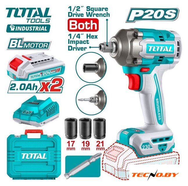 | Комплектация | - Гайковерт - 1 шт.- Аккумулятор 2,0 Ач TFBLI20011 - 2 шт.- Зарядное устройство TFCLI2001 - 1 шт.- Торцевая головка (17, 19, 21 мм) - 3 шт.- Инструкция- Кейс |