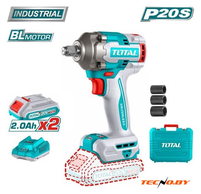 Комплектация | - Гайковерт - 1 шт.- Аккумулятор TFBLI2001 2,0 Ач - 2 шт.- Зарядное устройство TFCLI2001E - 1 шт.- Торцевая головка (17, 19, 21 мм) - 3 шт.- Инструкция.- Кейс. |