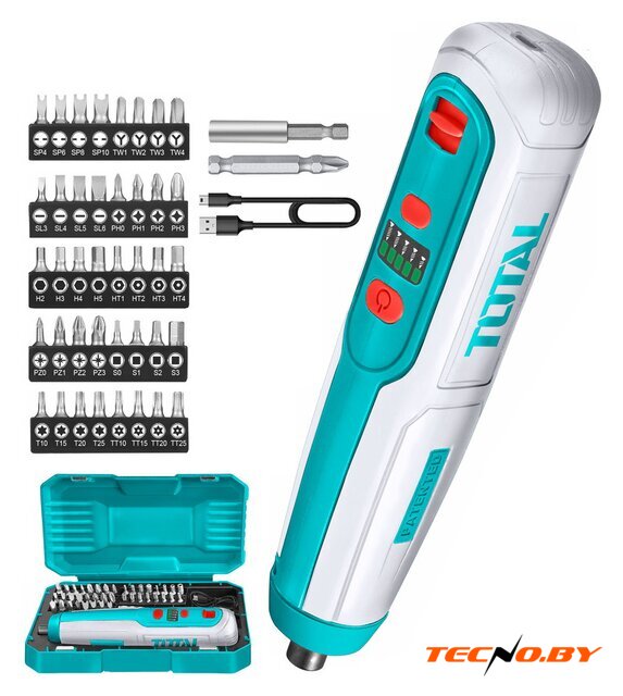 Комплектация | - Бита (25 мм) - 40 шт.- Биты (50 мм) - 1 шт.- Магнитный держатель бит - 1 шт.- Кабель Micro USB для зарядки - 1 шт.- Инструкция- Кейс |
