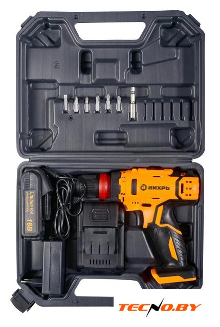 дрель-шуруповерт, аккумулятор 18V, Li-ion, патрон быстрозажимной, 2 скорости, режимы: сверление/шуруповерт