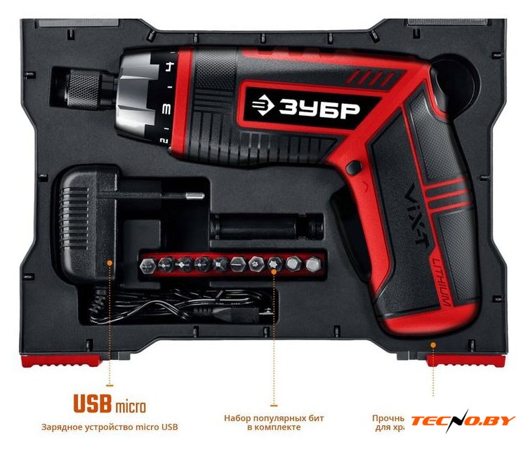 Биты (насадки-отвертки) | 10 (Hex, Torx, Phillips, Pozidriv, Slotted) |