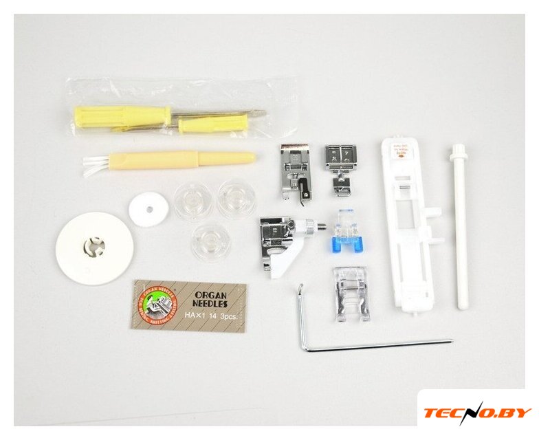 | Комплектация | комплект игл, шпулька (3 шт.), педаль, отвертка (2 шт.), щеточка, стержень для второй катушки, сетевой шнур, направляющая для выстегивания, фетровая подушечка для катушки, вспарыватель, подсветка рабочей зоны, отвертка-ключ, держатель катушки |
