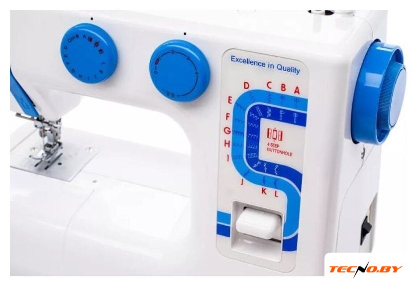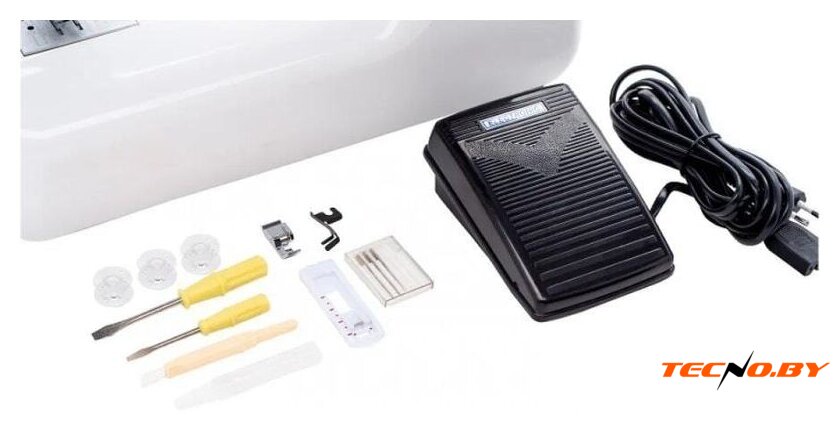 электромеханическая, вертикальный качающийся челнок, полуавтоматическое выполнение петли, швейные операции: потайная строчка/трикотажная строчка/декоративная строчка