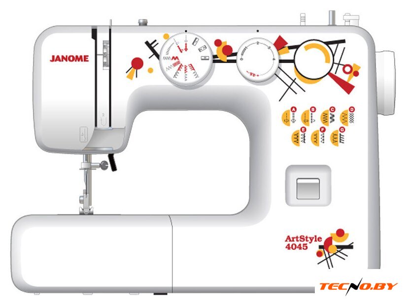 электромеханическая, вертикальный качающийся челнок, автоматическое выполнение петли, швейные операции: имитация оверлочной строчки/потайная строчка/трикотажная строчка/декоративная строчка