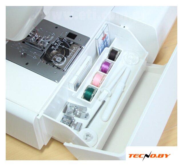 электронная, горизонтальный ротационный челнок, автоматическое выполнение петли, швейные операции: имитация оверлочной строчки/потайная строчка/трикотажная строчка/декоративная строчка/алфавит (латиница)/алфавит (кирилица)