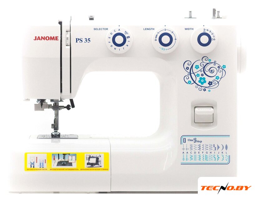 электронная, горизонтальный ротационный челнок, автоматическое выполнение петли, швейные операции: имитация оверлочной строчки/потайная строчка/декоративная строчка/алфавит (латиница)/алфавит (кирилица)