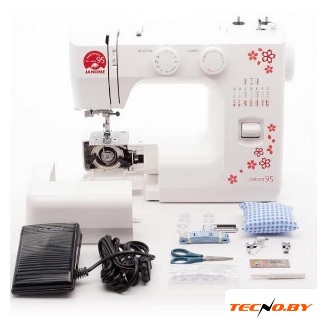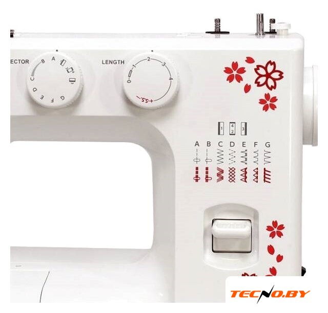 электромеханическая, вертикальный качающийся челнок, автоматическое выполнение петли, швейные операции: имитация оверлочной строчки/потайная строчка/трикотажная строчка/декоративная строчка