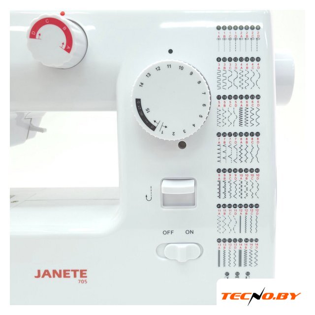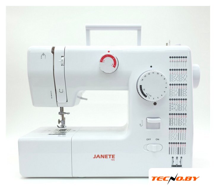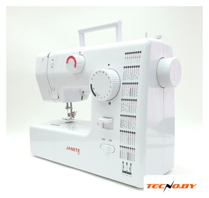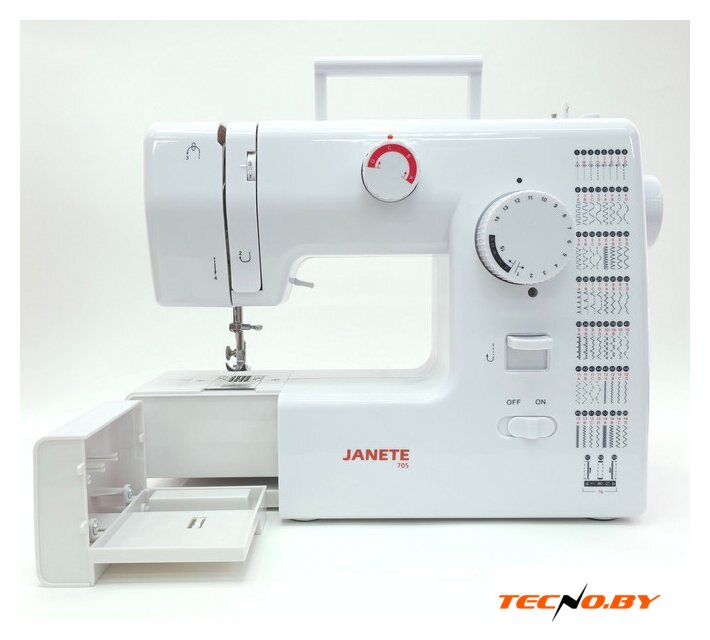 | Комплектация | педаль, шнур питания от сети, 2 катушки, 2 шпульки, ручной нитевдеватель, игла #14, лапка для выметывания петли |