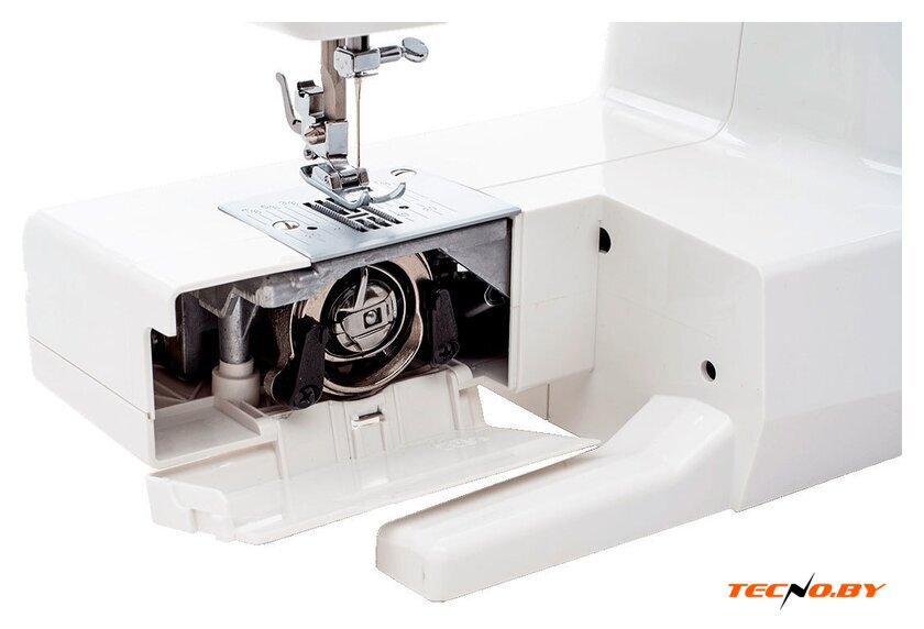 электромеханическая, вертикальный качающийся челнок, полуавтоматическое выполнение петли, швейные операции: имитация оверлочной строчки/потайная строчка/трикотажная строчка/декоративная строчка