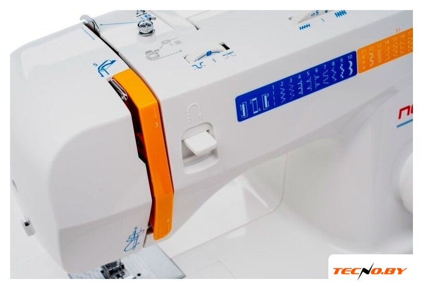 электромеханическая, вертикальный качающийся челнок, полуавтоматическое выполнение петли, швейные операции: имитация оверлочной строчки/потайная строчка/трикотажная строчка/декоративная строчка