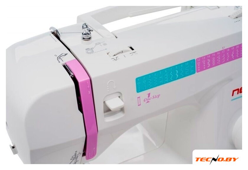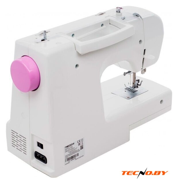 электромеханическая, вертикальный качающийся челнок, полуавтоматическое выполнение петли, швейные операции: имитация оверлочной строчки/потайная строчка/трикотажная строчка/декоративная строчка